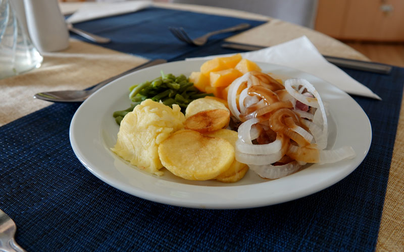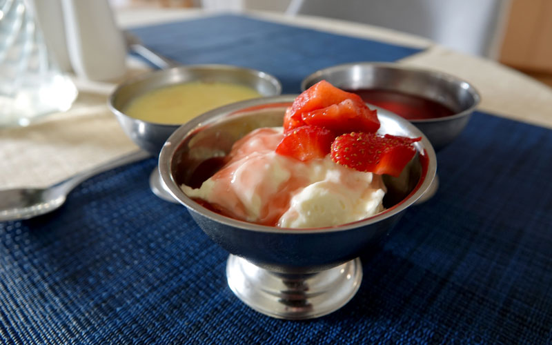All our meals are freshly prepared and cooked on site by our kitchen team, and we provide a choice at every meal, and for every course during the day.