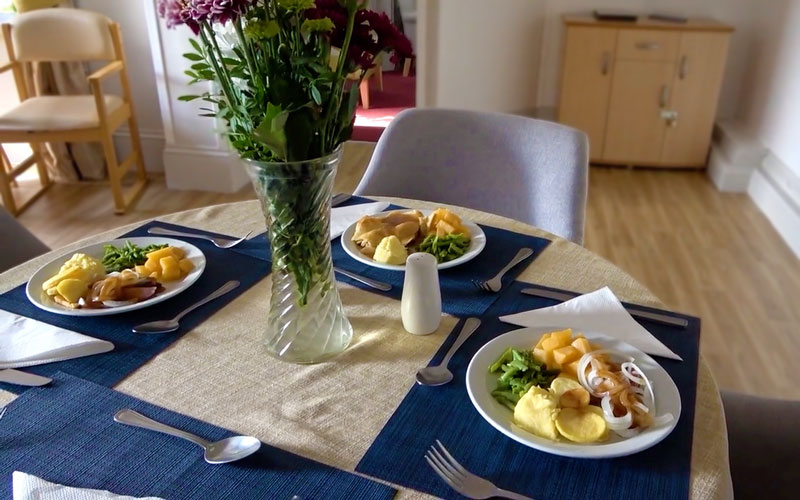 Residents are provided with three carefully planned meals each day, breakfast, lunch, and tea with refreshments and drinks provided throughout the day.