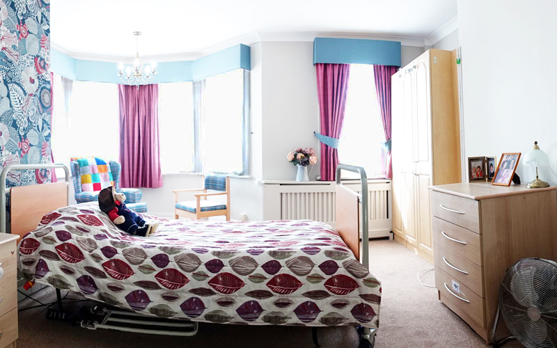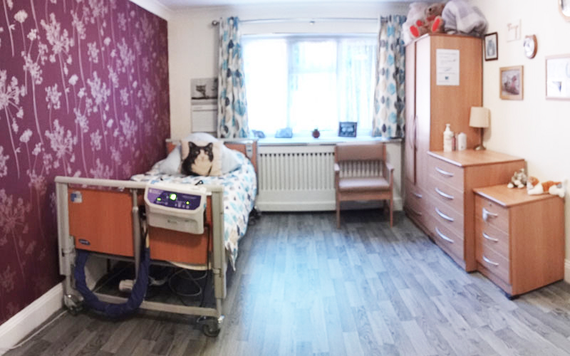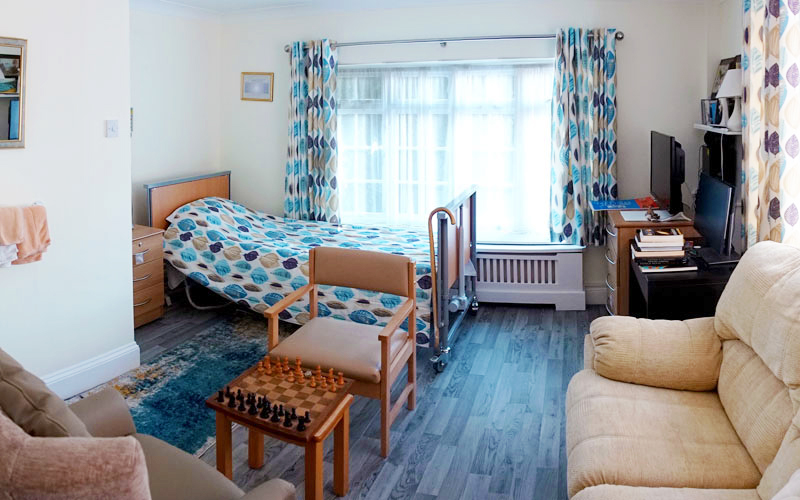 All rooms are furnished to the highest standard, and in addition to the comfortable bed with bedside table, there is an armchair, wardrobe, chest of drawers and colour TV. There is a call bell for a resident to use when assistance is required.